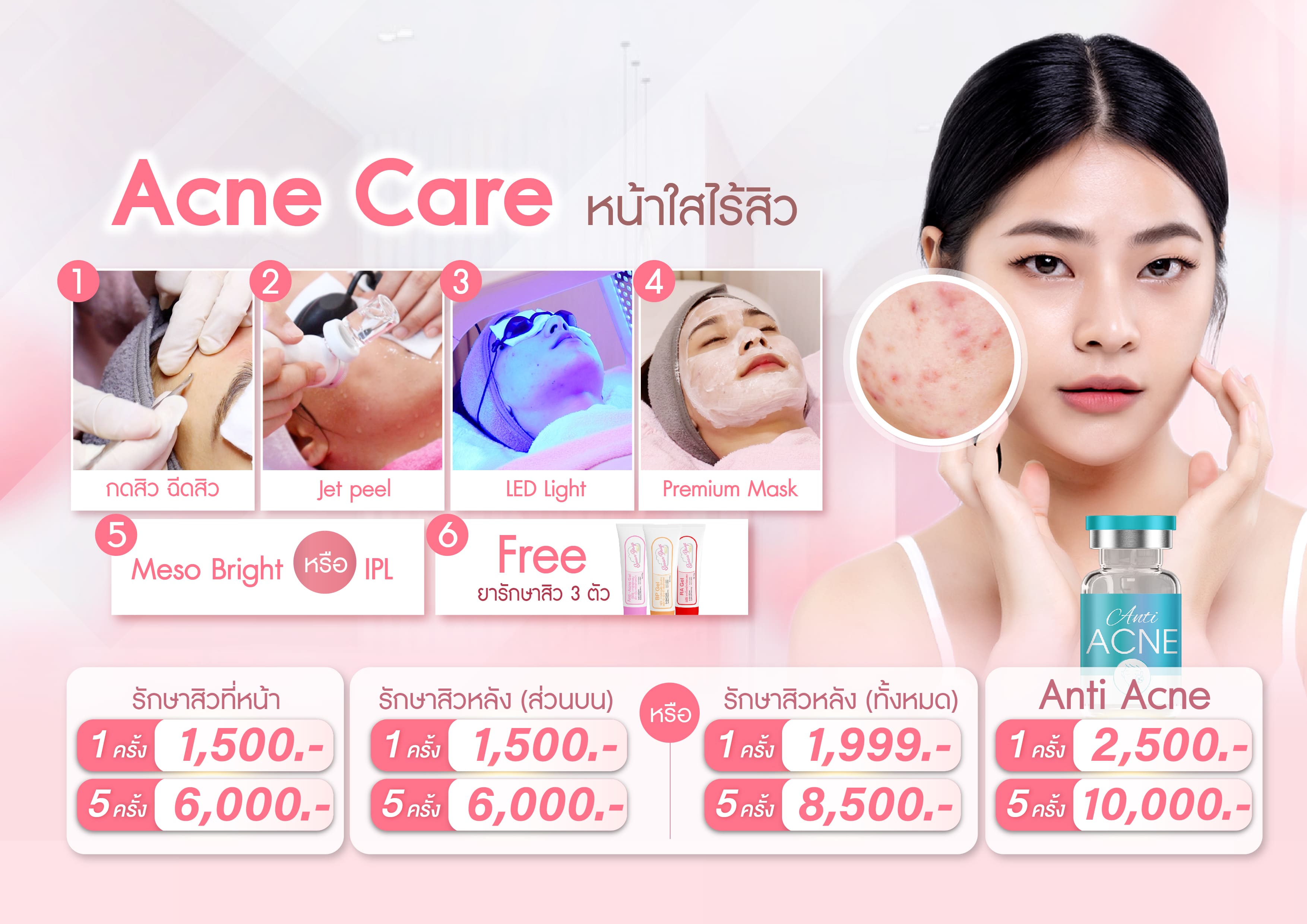 รักษาสิวและรอยสิว 1 ครั้ง 1,500.- 5 ครั้ง 6,000.-