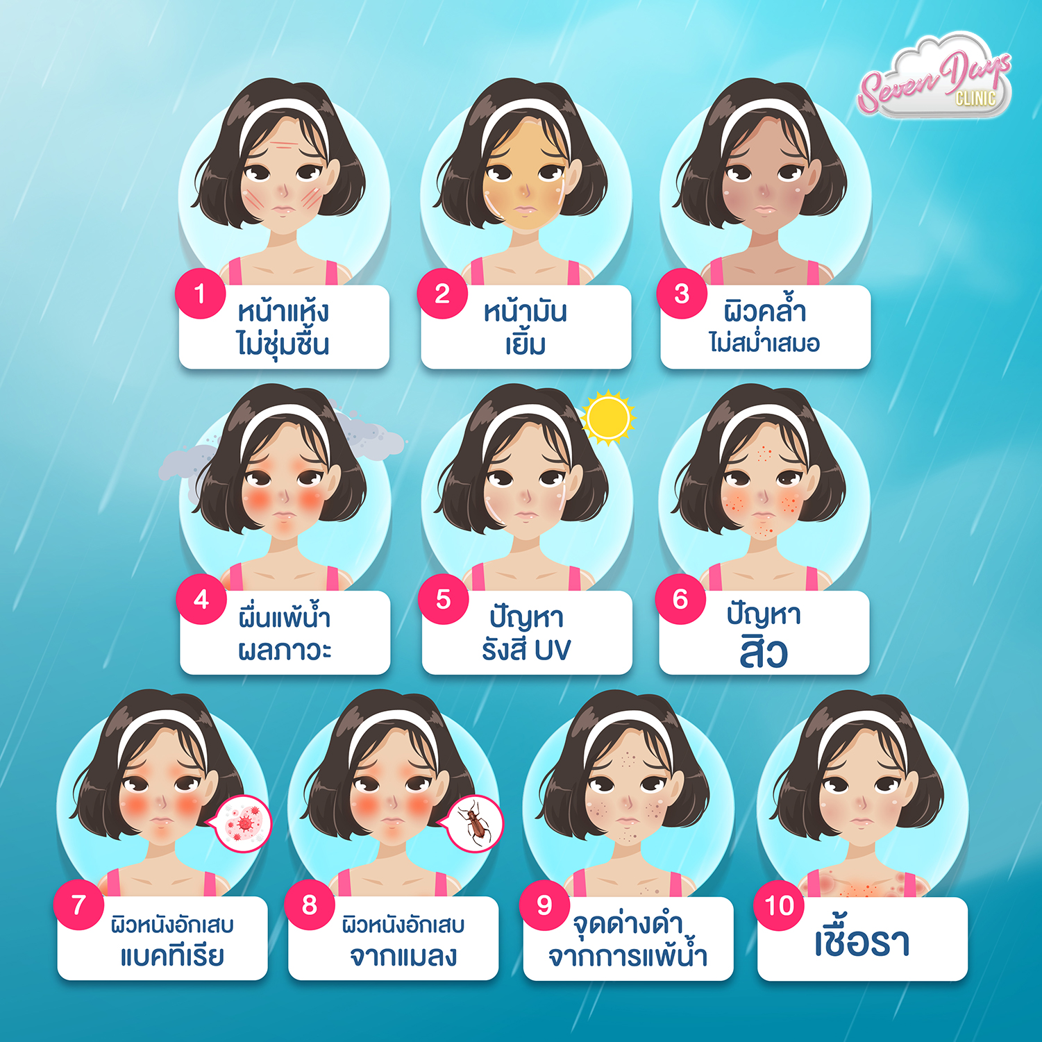 รวมวิธี ดูแลผิวจาก 10 ปัญหาผิวที่มักพบในฤดูฝน